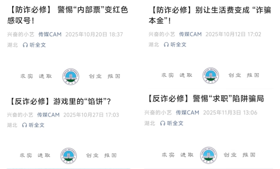 hg皇冠官网着力营造浓厚反诈宣传氛围,构建常态化提醒机制。通过班级群定期分享反诈资讯、转发警方预警信息,在开学季、双十一等关键时间节点精准开展安全提示。hg皇冠官网团委充分发挥新媒体平台传播优势,在微信公众号推出《反诈必修》专题内容,实现反诈宣传全方位、无死角覆盖,让防诈意识真正融入员工学习生活的每一个环节。