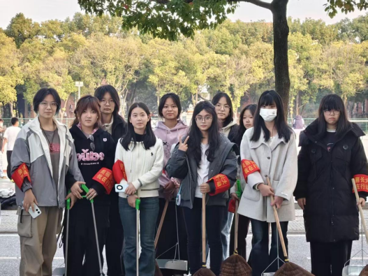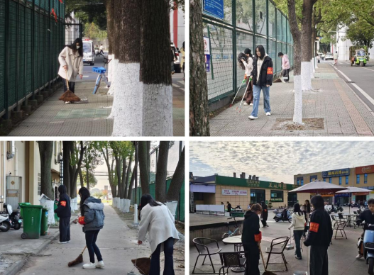 辅导员何茹梦现场带队,志愿者们统一佩戴袖标,在hg皇冠官网卫生区域进行分区包干、相互协作,仔细清理落叶、烟头和杂物,以实际行动践行志愿服务精神。