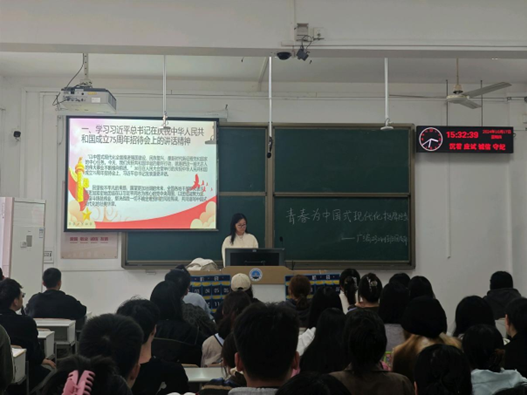 在活动开展过程中,各支部团支书通过丰富的事例和生动的讲解,带领同学们学习习近平总书记在庆祝中华人民共和国成立75周年招待会上的讲话精神、习近平总书记重要文章《大力弘扬伟大爱国主义精神,把强国建设、民族复兴伟业不断推向前进》、习近平总书记在中华人民共和国国家勋章和国家荣誉称号颁授仪式上的重要讲话精神及习近平总书记给“银龄行动”老年志愿者代表的回信精神。