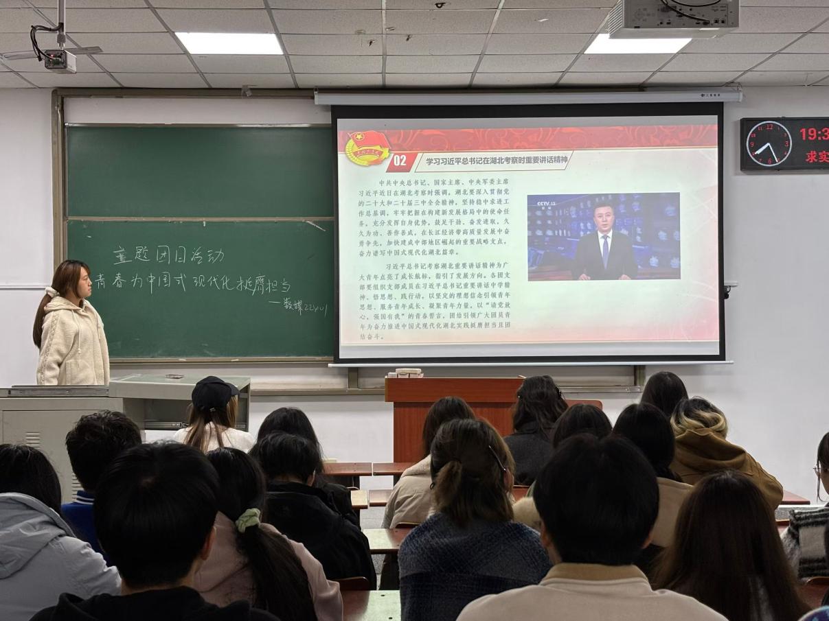 此次主题教育实践活动加深了广大团员青年对党的二十届三中全会精神的理解和认识。班团会结束后,播音22401班陈梦琪同学发表感言道:“习近平总书记的重要讲话为广大青年点亮了成长航标,指引了发展方向。青年学子们要以坚定的理想信念为奋力推进中国式现代化湖北实践挺膺担当。”
