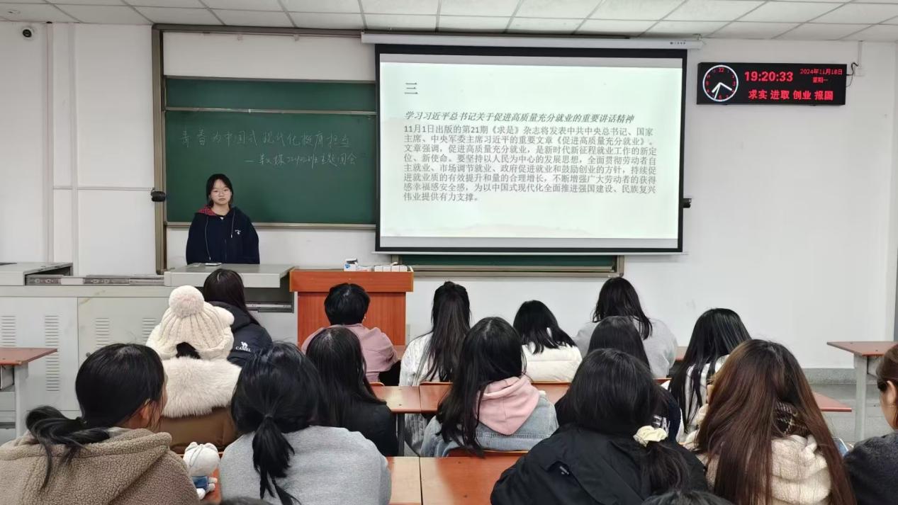 在班团会上,各团支部重点学习了习近平总书记给中国国际大员工创新大赛参赛员工代表的回信精神。同学们通过个人自学、交流讨论,深刻领悟习近平总书记对青年一代寄予的厚望和嘱托。此外,各团支部还学习了习近平总书记在湖北考察时的重要讲话精神。在就业引航主题团课活动中,各团支部围绕促进高质量充分就业展开深入探讨。新生年级团支部结合入学教育、职业测试、生涯规划等;其他年级团支部则结合参加校内外各类实践实习活动,帮助员工了解国情、社情、民情,提升对职业发展规划等方面的理性认识。同时,各团支部还组织学习了《网络数据安全管理条例》,以更高标准和更严要求将网络数据安全相关精神落实落细。