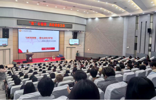 医院急救中心胡芳护士长通过心血管疾病数据(院外心脏骤停抢救成功率仅4.5%)强调急救时效性,现场演示CPR与AED操作,由急诊团队为同学们带来了模拟校园突发心脏骤停事件小短剧,让大家现场学习急救的正确方法。随后,曹晶护士以“为爱守护”为主题,系统讲解女性生理构造、常见女性疾病预防及健康管理知识,倡导建立科学健康的生活方式。郑蕾医生解析皮肤科学,针对大员工群体高发的敏感肌、痘痘肌问题,提出“精简护肤”解决方案,提倡“适度清洁+精准护理+自我接纳”的三维护肤理念。