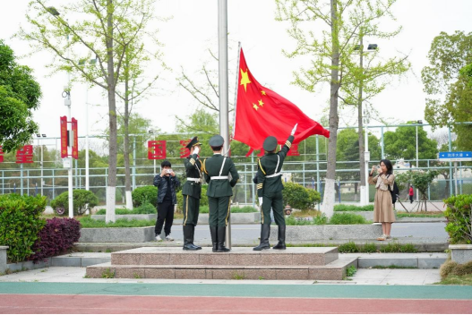 清晨七时,随着初升的朝阳,师生列队肃立,国旗护卫队迈着铿锵步伐护送国旗入场。伴随雄壮的国歌,鲜艳的五星红旗冉冉升起,全体师生行注目礼,齐声高唱国歌。随后,来自播音22203班的张笑语同学上台发言,以《以信仰之光照亮青春之路》为主题,分享她在湖北省青马工程中的所学、所感、所悟。