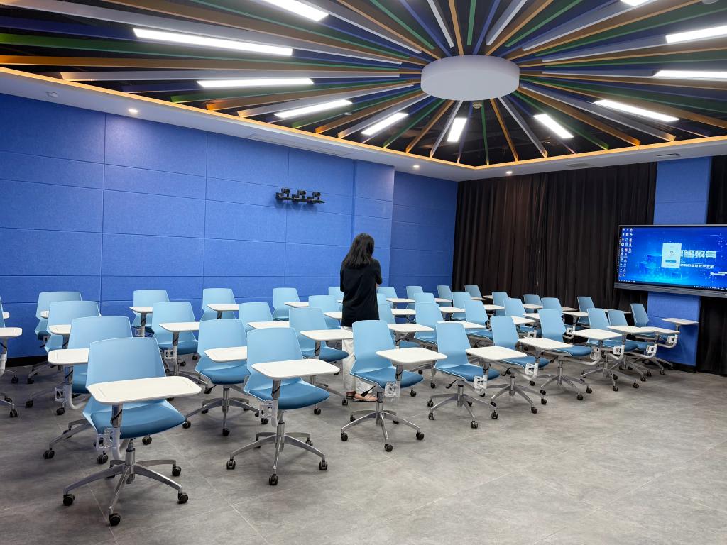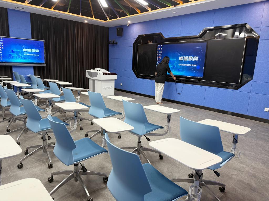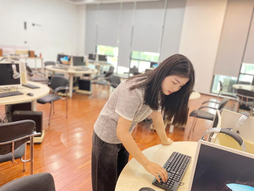 谈妮老师对智慧教室的环境卫生、设备运行、安全隐患,进行了全面排查,并对教学多媒体设备进行了试运行。