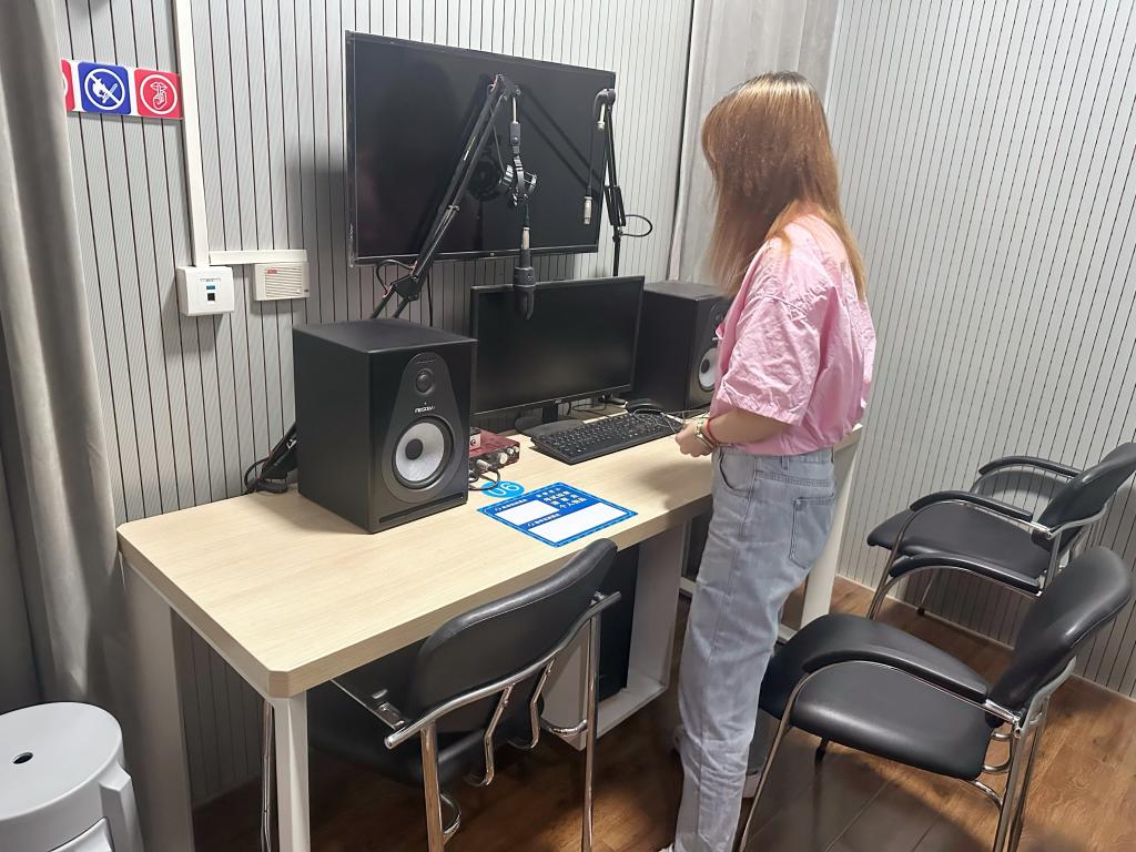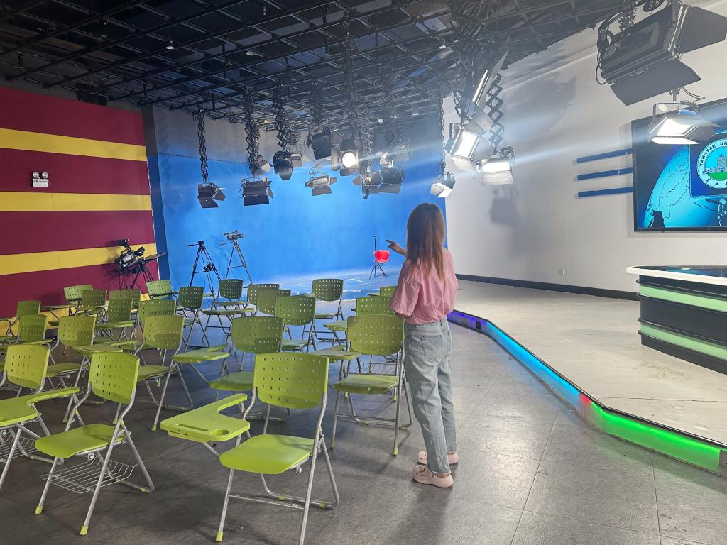 龚哲昕老师对演播厅、录音棚、摄影棚等实训实践场所进行了一次全方位检查,主要涉及电源、电脑、麦克风、相机、灯光等教学设备是否能正常运行,满足教学需要。