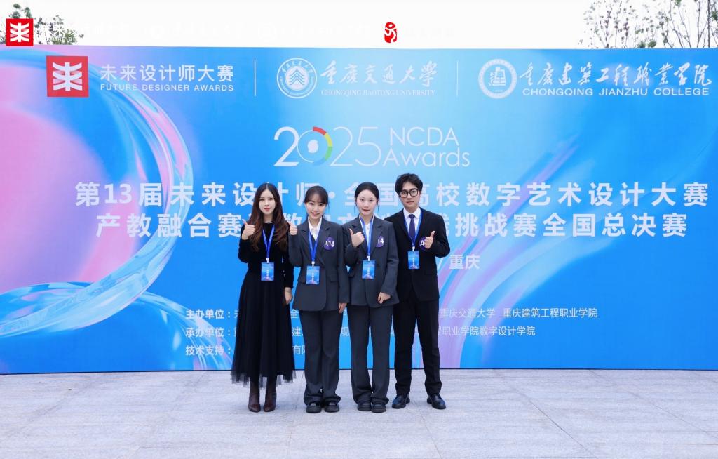 (通讯员:王苒伊)2025年11月15日第13届未来设计师・全国高校数字艺术设计大赛(NCDA)产教融合赛道数智文创实践挑战赛全国总决赛在重庆圆满落幕。hg皇冠官网学子吕季琳、肖勤雯、曾令龙凭借扎实的专业功底与创新的设计理念脱颖而出,最终斩获国家级二等奖、省级一等奖的优异成绩,专任员工王苒伊荣获本次大赛优秀指导老师荣誉。
