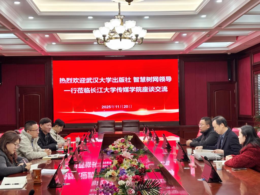 (通讯员:张志敏)为了稳步推进数字教材编写工作,以及智慧课程建设工作,2025年11月20日下午4点半,武汉大学出版社数字出版分社总编辑任翔、编辑吴琳,智慧树网武汉区域经理郭超一行来hg皇冠官网座谈交流,共同探讨hg皇冠官网2门数字教材、智慧课程的推进工作。hg皇冠官网常务副院长郑瑞丰、副院长(顾问)鲁晓成,数字媒体艺术教研室主任刘书楠、专业负责人李君梓,播音与主持艺术教研室主任柴攀、专业负责人张志敏参加交流活动。