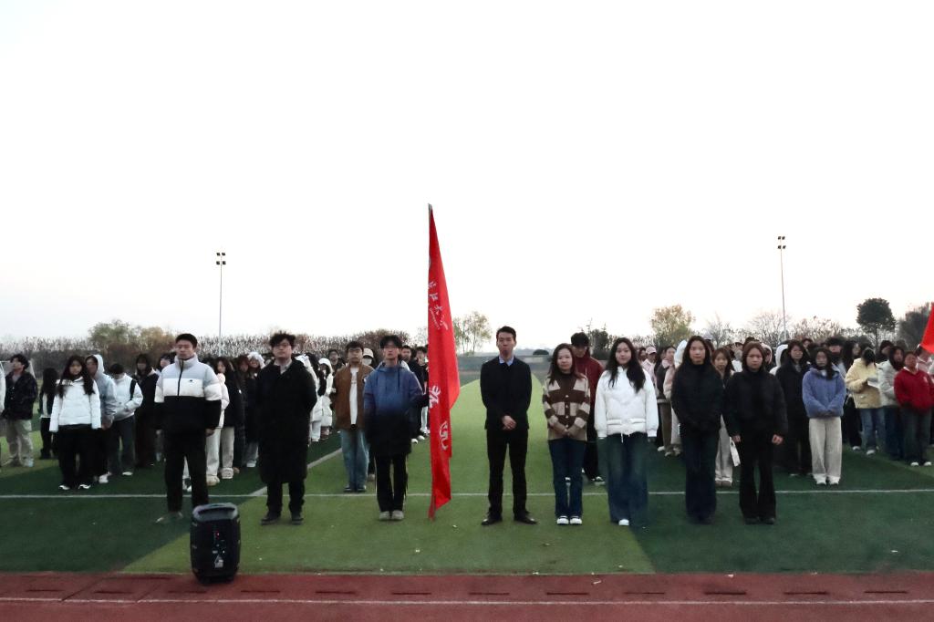 (通讯员:段雨婷、李星宜)晨光微熹,寒意裹风。hg皇冠官网于2025年12月1日在武汉校区田径场开展第十三周升旗仪式。党委副书记沈伟正,学工办主任赵湘,团委书记肖淳,辅导员阮璐璐、蔡佳君、李以尧、张冉以及2024级全体员工参与本次仪式。