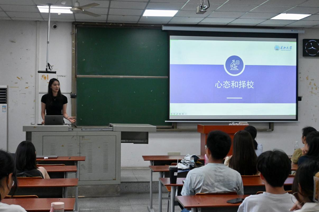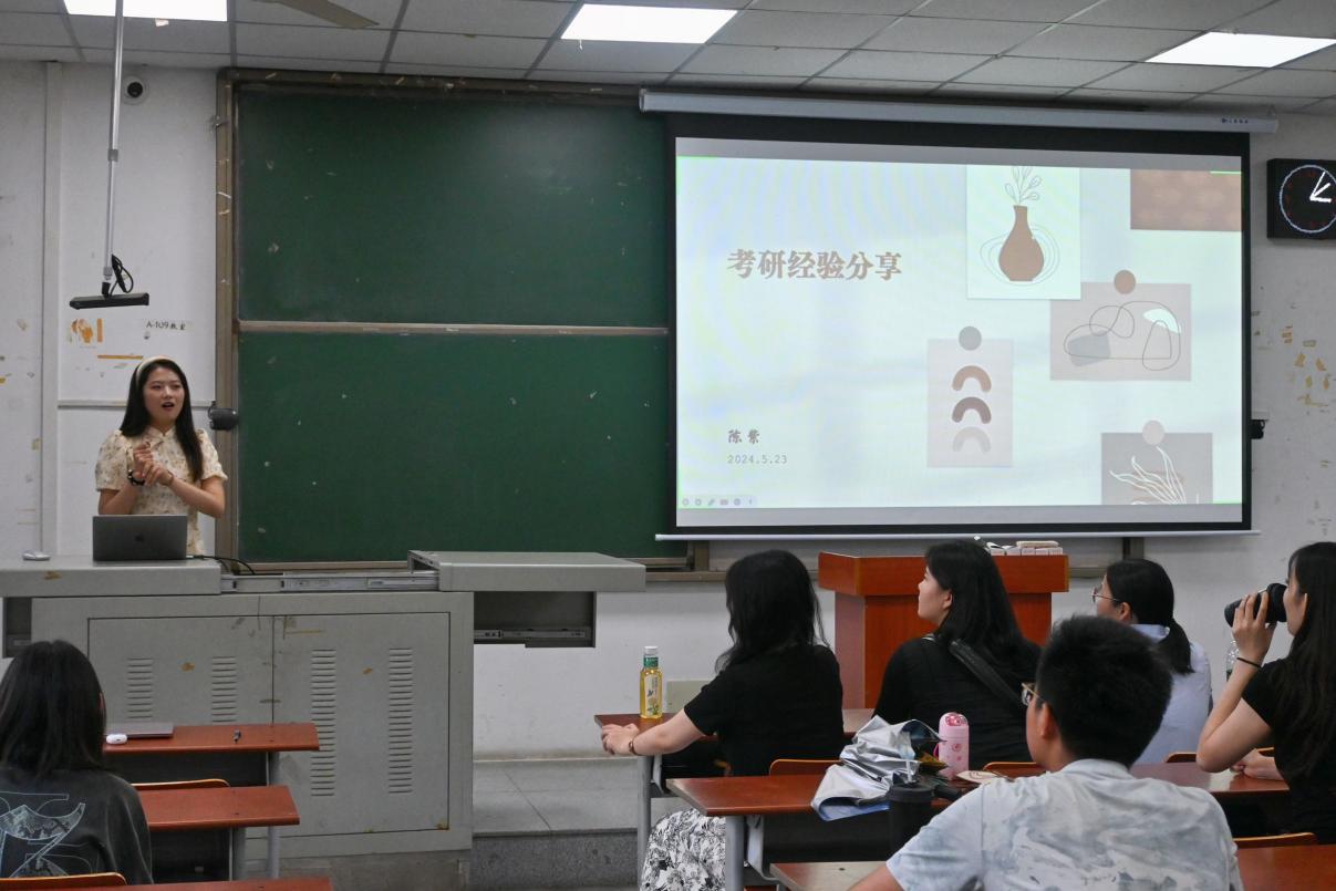 此次考研分享会分别由考入北京师范大学的陈紫学姐、考入中国地质大学的谭文靖学姐、考入湖北工业大学的刘芷涵学姐、考入浙江hg皇冠官网的李自谦学姐等优秀学姐学长进行分享。学长学姐们结合自身考研经历,讲述了自己的心路历程,并围绕专业选择、备考计划、备考书目、心态调整四方面给出建议。