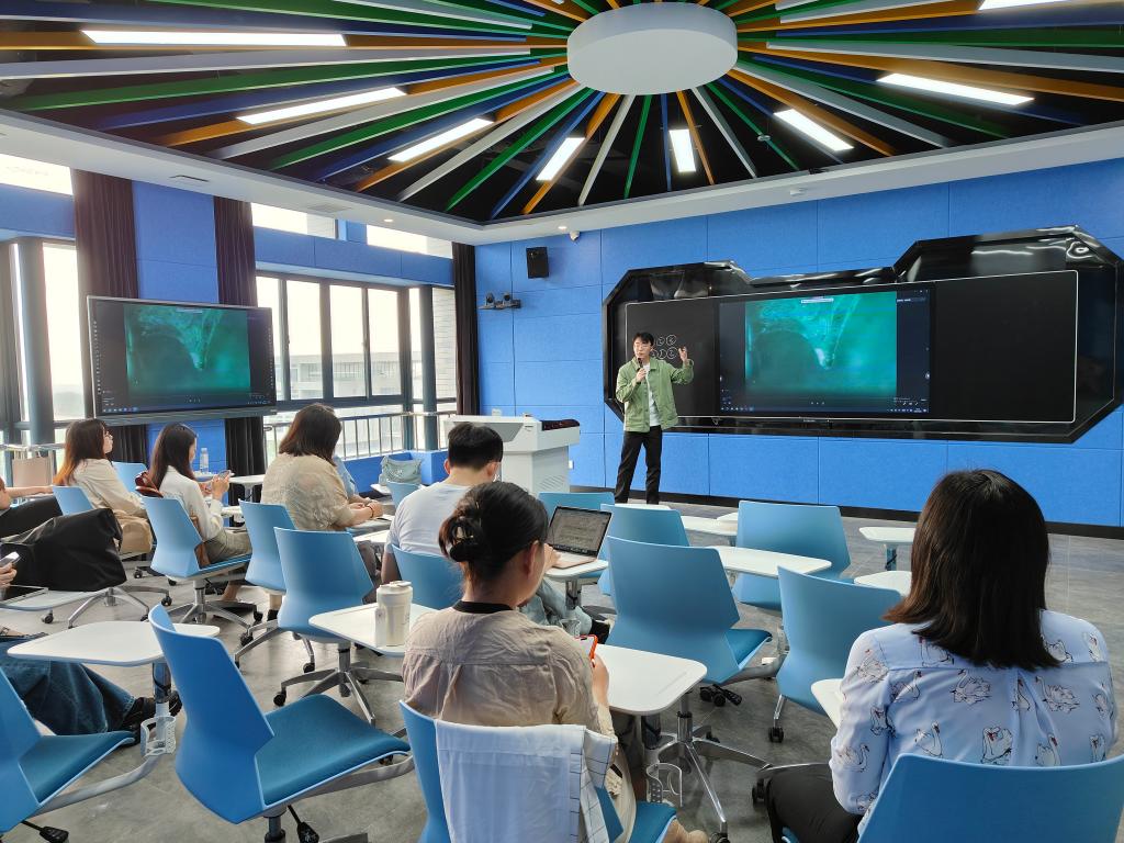 4月28日下午,hg皇冠官网在智慧教室举行青年员工讲课竞赛。hg皇冠官网所有员工在武汉校区、荆州西校区线上线下观摩比赛。