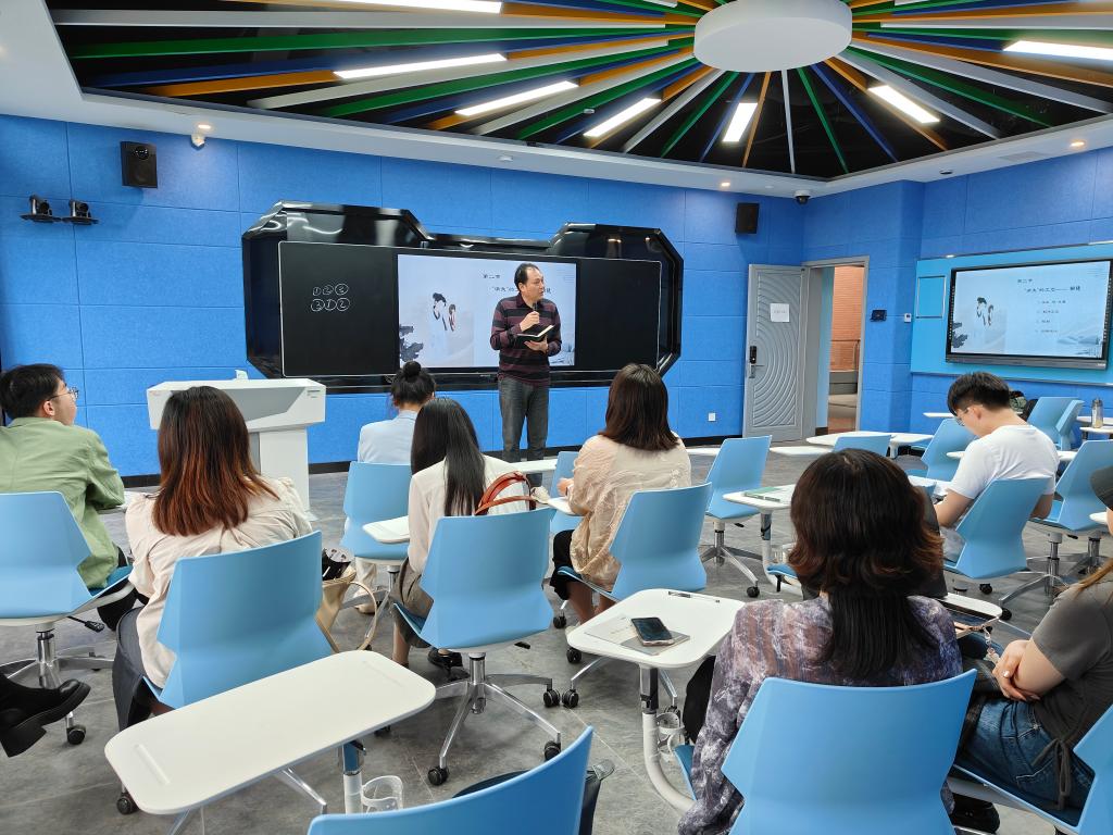 苑思琪讲授了“影视文学创作必须借助影视思维”,张尚元分享了他的“影视评论写作”,吕书春讲述了“电影是什么”,姜雪介绍了“消失的工艺——点翠”。老师们情绪饱满、绘声绘色,课堂气氛热烈。专家们也对比赛选手和青年员工改进教学提出了建议。一是要注意理论的精确、语言的精炼、呈现的精彩;二是要注意教学的系统性(课前、课中、课后)、规范性、创新性等。