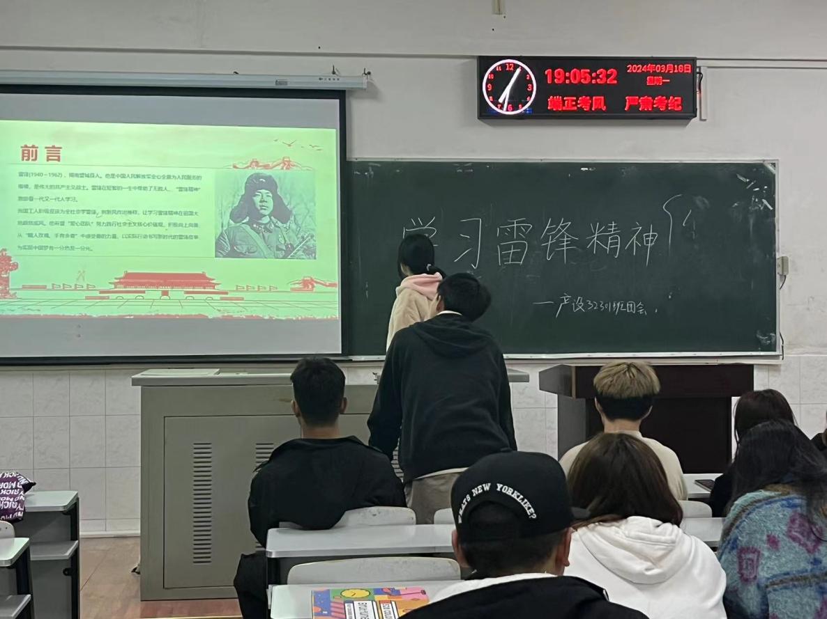 在此次班会上,各团支书带领同学们进一步了解雷锋事迹,学习雷锋精神的内涵,同学们在雷锋精神的感染下积极参与到此次班会中分享自己的感悟与见解,并决心以雷锋为榜样,用实际行动去发扬雷锋高尚的风格,弘扬雷锋可贵的精神,让雷锋精神绽放新时代的光芒。