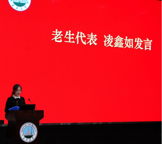 老生代表凌鑫如在发言中表示:专业的学习需要追求纵深发展,大员工应避免成为枵然无用之人,多参加专业相关竞赛与实践,运用最擅长的事物助力国家发展。另外凌鑫如同学还提及,新生也要学会在生活中寻找“小确幸”,让大员工活多一些美好。