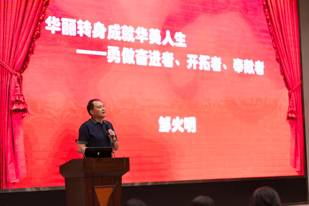 最后,hg皇冠官网正处级组织员邹火明教授寄语新同学“华丽转身成就华美人生—勇做奋进者、开拓者、奉献者”。邹教授分享报告了三个方面,一是从“衡量一个优秀大员工的12条法则”出发,为大家讲解如何做一名优秀的大员工,同时,也从反面告诉大家“如何废掉一名大员工”;二是和大家谈到轴心时代与精神指引,以三纲领:“在明明德、在亲民、在止于善”;八条目:“格物、致知、诚意、正心、修身、齐家、治国、平天下”;勇做走在时代前面;三是从“奋进者、开拓者、奉献者”出发,为大家讲述了成什么人。最后,邹教授希望大家把自己培养成奋进之才、开拓之才和奉献之才,在中华民族实现自己中华梦的伟大蓝图中,写下浓墨重彩的一笔!