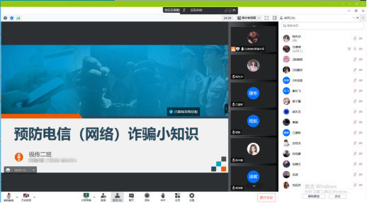 本次班会主要学习了防灾减灾安全知识及观看了教育视频,观看了防溺水、消防安全教育视频,学习了《关于加强员工宿舍消防安全管理的规定》,在班会上,各辅导员对食品安全及校园交通安全教育进行了强调,倡导同学们注意食品安全,不在无证、无资质的摊位购买食品,校内电动车、摩托车注意骑行安全,有序停放。同时通过晚点名、查寝、班会等多种途径进行反诈宣传,提醒员工加强反诈意识,谨防诈骗。