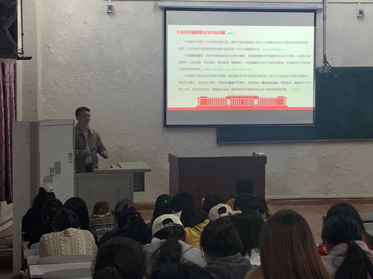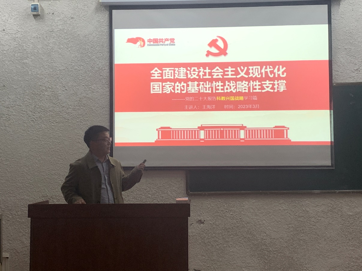 在主题培训上,王海洋老师带领同学们进一步深入学习了党的二十大报告科教兴国战略的内容,并展开对科教兴国的讨论。