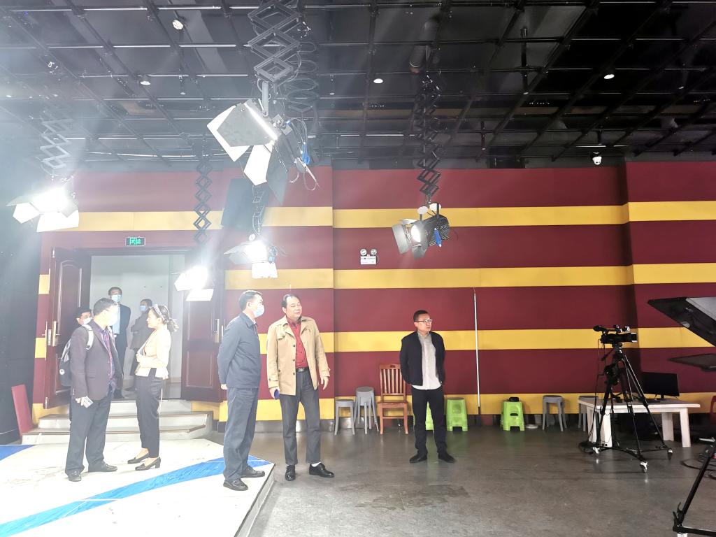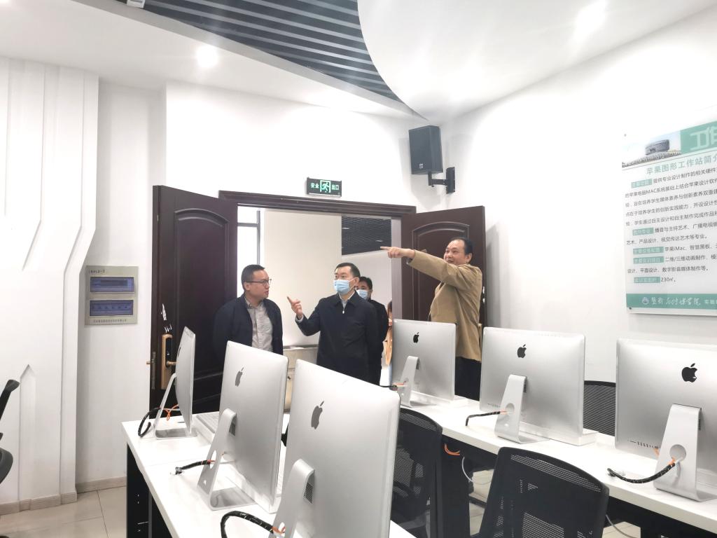 会后,敖书记一行参观了录音棚、摄影棚、演播大厅、综合实验室、苹果图形工作站、手绘实验室等专业实验室,充分肯定了hg皇冠官网专业实验室的一流建设水平。