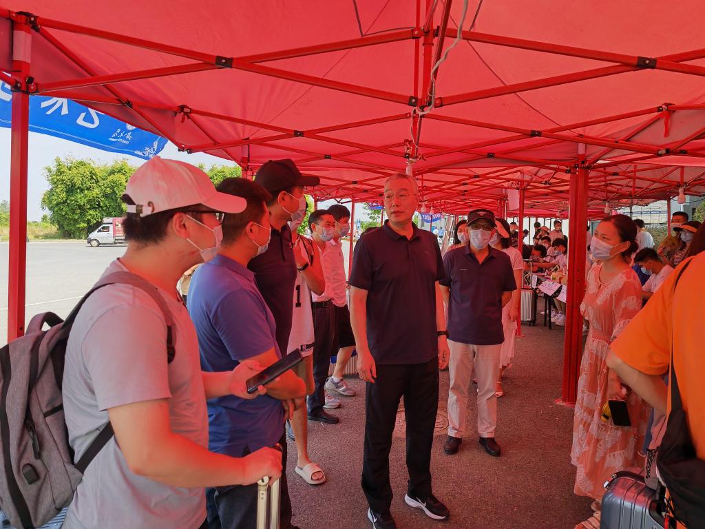 (通讯员:郑瑞丰)2022年8月27日下午2时许,校长冯征、党委副书记敖廷华在武汉校区负责人的陪同下视察指导hg皇冠官网迎新报到工作,慰问坚守岗位的迎新报到师生,并对hg皇冠官网专升本新生致以热烈的欢迎。hg皇冠官网党委书记邹火明、副书记魏红洁、副院长郑瑞丰陪同视察活动。