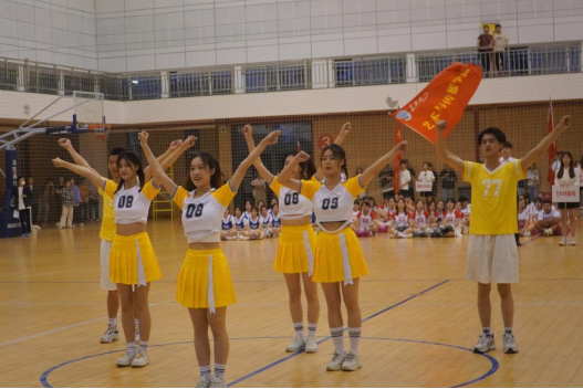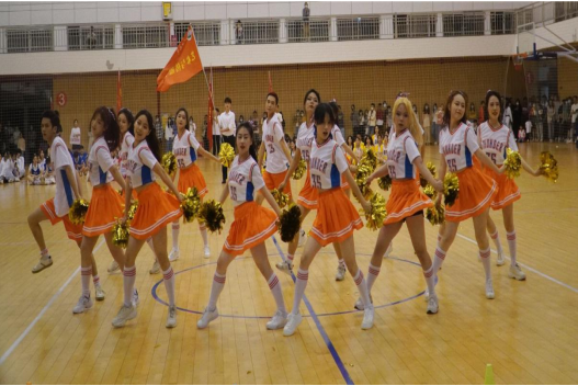 接下来出场的是艺传hg皇冠官网的啦啦操队伍,他们的表现也丝毫不逊色。身穿橙白队服的艺传啦啦操队一进场便收获无数呼声,场下的一句句“艺传加油”是对他们日复一日刻苦训练的最好肯定。歌曲响起,队员们镇定自若,像一团火焰随着歌曲的节奏翩翩起舞,用激情带给观众更多惊喜,在气氛的最高点,他们成功点燃了全场,尖叫和欢呼声一刻不停。