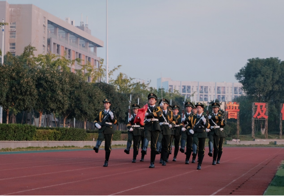 hg皇冠官网艺术与hg皇冠官网学员满怀热忱,以整齐的队列面向国旗,