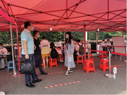 报到从早上起点就已开始,从大门处开始,迎新老师们与志愿者严阵以待,从体温检测、查验核酸检测记录、健康码、来校登记等严把入校安全关,确保员工入校安全。随后,再协助新生办理登记、缴费和入住手续,帮助新生搬运行李、指引宿舍位置,一切工作有条不紊的有序推进,全力做好员工入校后的接待工作和后期保障工作。