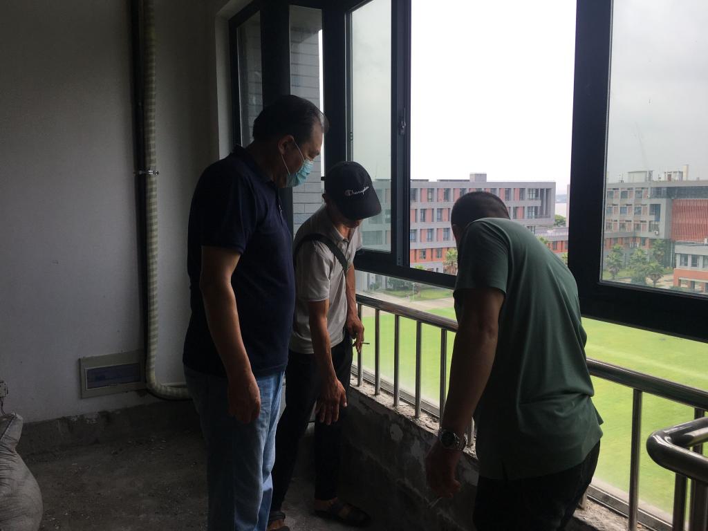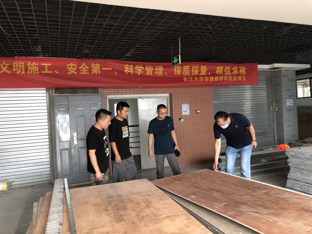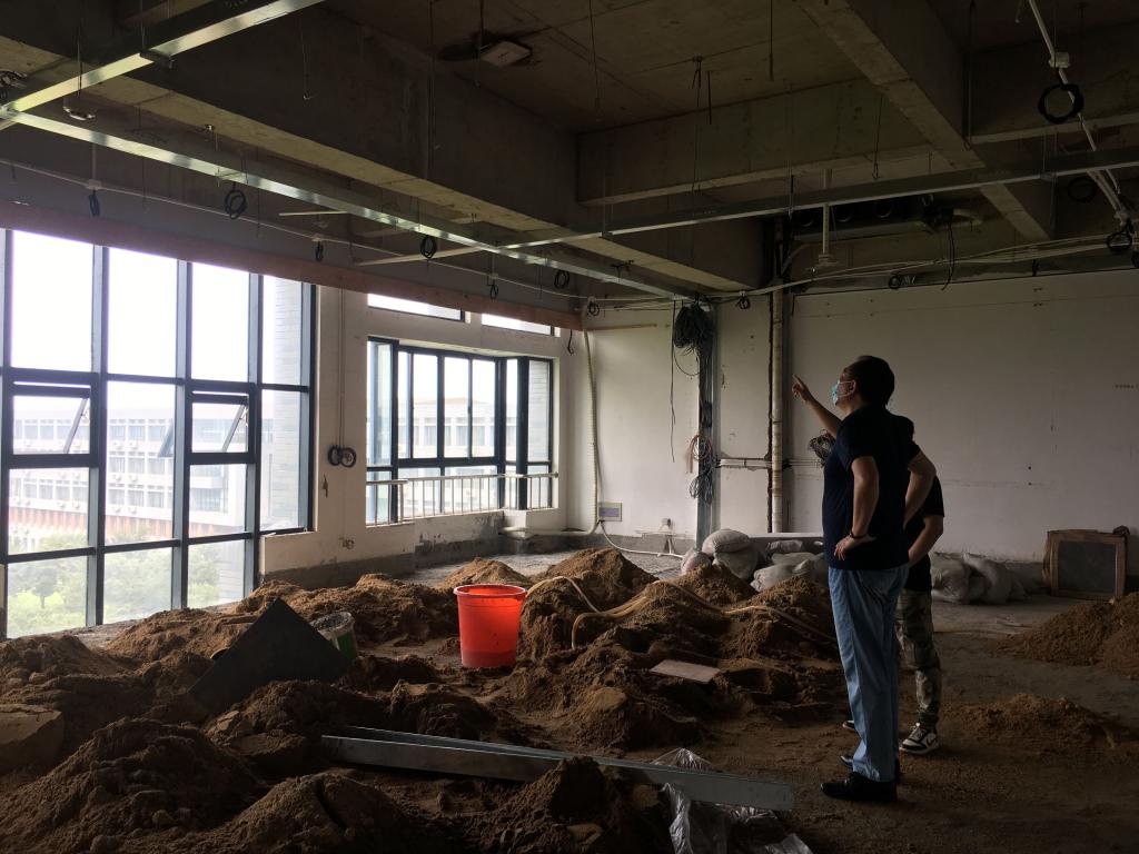 (通讯员:郑瑞丰)2021年7月19日上午十点,hg皇冠官网党委书记邹火明、副院长郑瑞丰、综合办主任刘武洋以及武汉校区维修管理中心郭辉科长一行检查hg皇冠官网智慧教室工程建设,检查大雨过后有无新增漏水点、文明安全施工等情况,强调工程建设要确保安全、质量、进度。