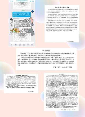 在谈及本次专题教育活动学习感想时,产设31901班刘楚凡说道:“在全开展“学回信精神、担时代大任”专题教育活动后,让我更加明白。我们这一代人身上是祖国的未来,我们要不畏艰难险阻勇担时代使命。”