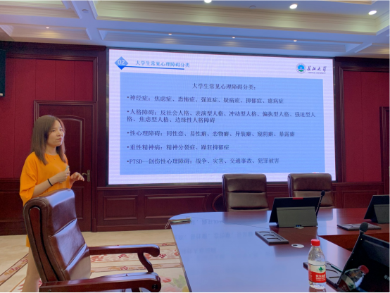 首先,赵湘老师从大员工心理健康标准、大员工常见心理问题及分析、案例分析、辅导员工作实操技巧等四个方面和大家深入浅出的进行了分享。同时,结合实际案例,有针对性地讲述了不同心理危机下应采取的的干预措施。她指出:“辅导员应该学习和了解心理知识,引导员工建立成熟防御机制。”