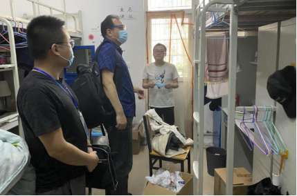在员工宿舍,院领导与同学们亲切交谈,关切询问员工假期生活、返校途中防护、住宿饮食情况,并叮嘱大家在全身心处理毕业事宜的同时,一定要做好个人防护,严格遵守疫情防控期间校园管理相关规定。随后,院领导走访了hg皇冠官网毕业生返校工作办公室华林员工公寓1栋202室,该宿舍作为毕业生返校工作临时办公室,为毕业生办理离校手续提供一站式服务。