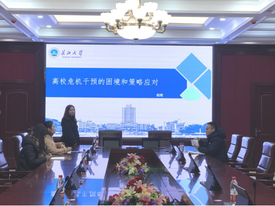 为加强hg皇冠官网辅导员队伍建设,提升队伍自我发展的能力和心理育人功能,1月3日下午,hg皇冠官网启动“菁英工程”培训系列第三期,hg皇冠官网学工办主任赵湘作了题为《高校危机干预的困境和策略应对》的主题培训。hg皇冠官网副院长郑瑞丰以及武汉校区全体辅导员参加了此次培训。
