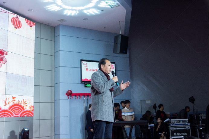 一曲舞毕,艺术与hg皇冠官网邹火明书记的上台讲话。邹书记代表hg皇冠官网领导上台表达新的一年对艺传hg皇冠官网的新年祝福。他以青春,母校,国家为三个基点,告诉我们需要善待青春,感恩母校,赞美祖国。