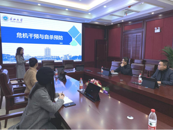 为了促进我院辅导员队伍专业化、职业化发展,hg皇冠官网启动“菁英工程”,旨在提高辅导员的思想政治素质、业务能力以及危机处置理能力,11月21日下午,hg皇冠官网学工办主任赵湘作了题为《危机干预和自杀预防》的主题培训。hg皇冠官网副院长郑瑞丰以及全体辅导员参加了培训。
