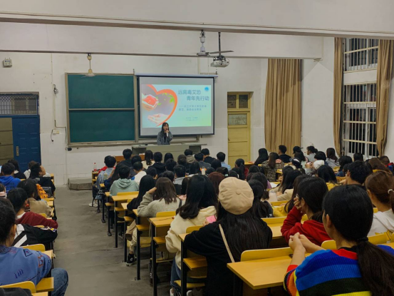 艺术与hg皇冠官网于2019年11月11日晚上7点在2教T教室开展了2019级新生“生命教育”系列讲座第三讲——“远离毒艾恐,青年先行动”,2019级全体新生参加,农hg皇冠官网的付雪娇老师受邀主讲。
