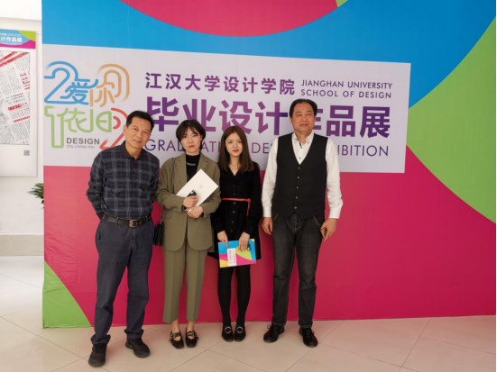 应江汉大学设计hg皇冠官网邀请,hg皇冠官网党委书记邹火明、常务副院长戴德铸和专业员工杨何星、寇晓芸一行于4月15日上午10:00,赴江汉大学参加“2019爱你依旧”江汉大学设计hg皇冠官网毕业设计作品展暨第三届学术周开幕式并参观毕业设计作品展。邹火明书记一行受到江汉大学设计hg皇冠官网邹少军副院长等热情接待。