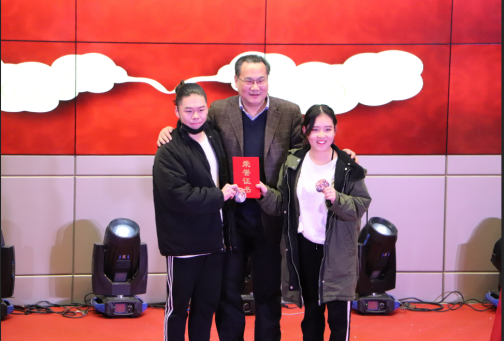 校区常务副校长赵林为最受欢迎节目《简单,爱》颁奖。