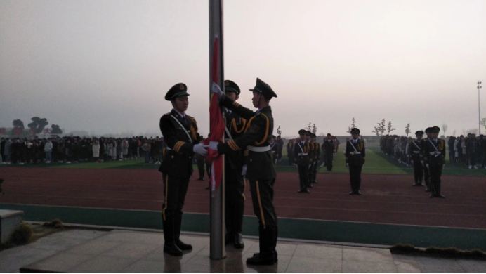 寒冬腊月,神清气朗。2018年12月17日上午7点,艺术与hg皇冠官网在武汉校区田径场举行了庄严的升旗仪式,在嘹亮的国歌声中,全体师生肃立,随着五星红旗冉冉上升行注目礼,直至礼毕。