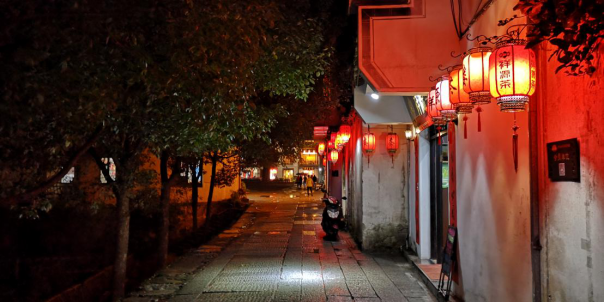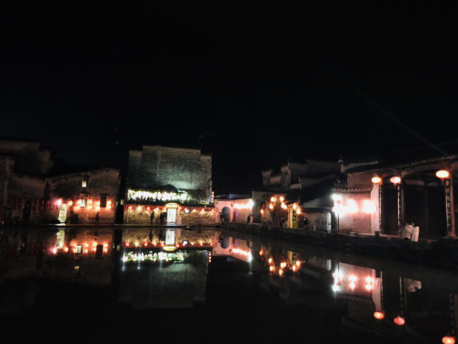 夜幕下的宏村,平静中也是那么动人。