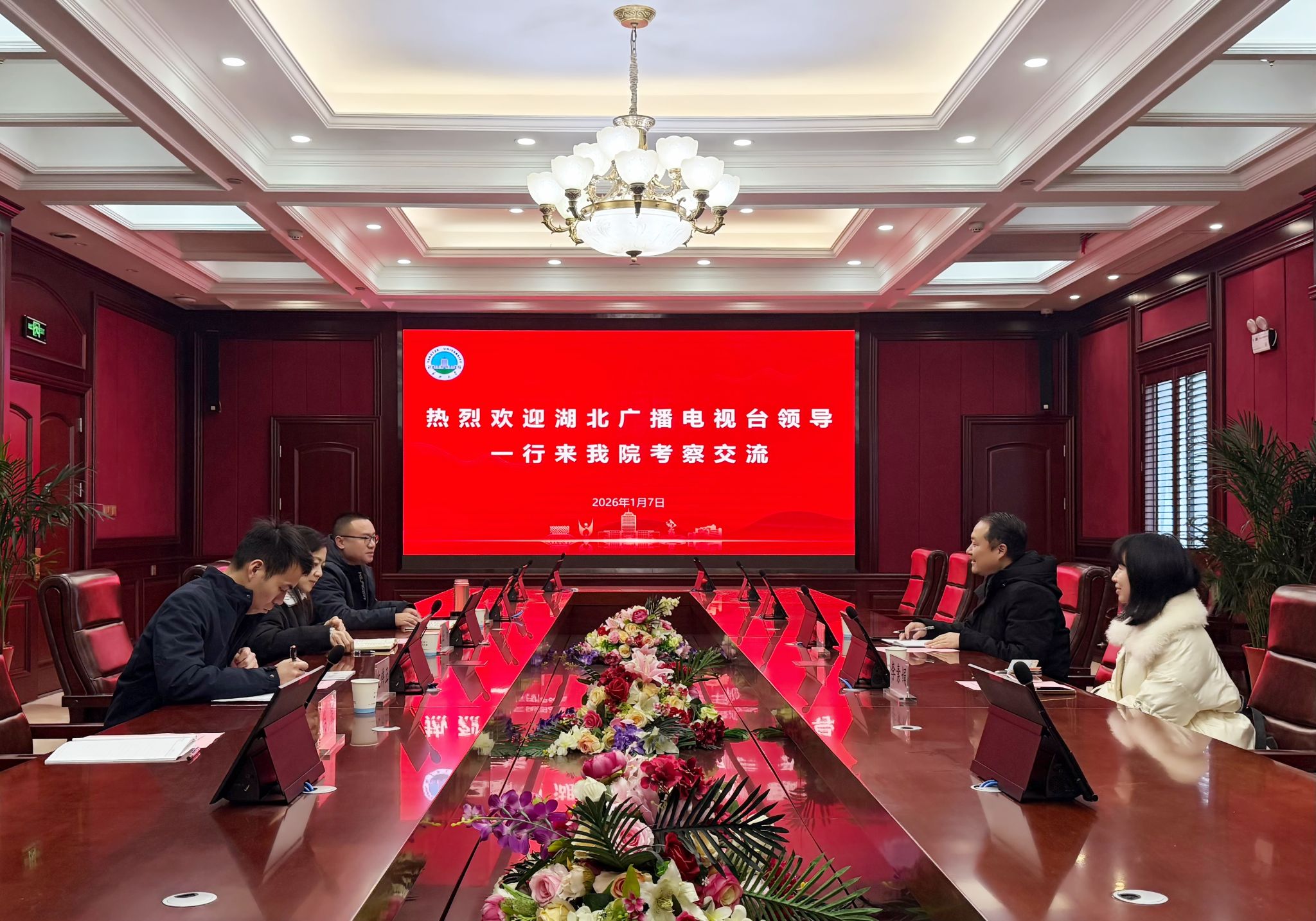 (通讯员:柴攀)为深化校企协同育人,搭建人才培养与就业实践桥梁,2026年1月7日上午,湖北广播电视台垄上频道人力资源部主任刘军、副主任李素娟一行专程来hg皇冠官网座谈交流,共同探讨实践要求、人才需求、人才培养等工作。hg皇冠官网党委书记任倩、党委副书记沈伟正、常务副院长郑瑞丰、播音与主持艺术教研室主任柴攀参加交流活动。