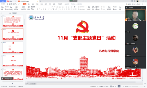(通讯员:赵湘)根据校党委组织部发布的《关于开展11月“支部主题党日”活动的通知》要求,11月24日下午,艺术与hg皇冠官网三个支部全体党员分别在知音厅以及腾讯会议利用线上、线下相结合的方式开展了十一月主题党日活动,本次活动由各支部集中开展,会后开展讨论。全体hg皇冠官网教职工党员和员工党员(含预备党员)参加了本次活动。