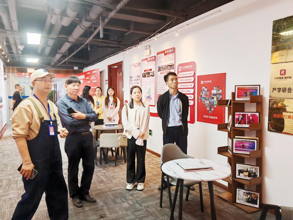 9月22日下午,hg皇冠官网领导一行来到湖南创播未来文化产业发展有限公司(小红帽直播新媒体产学研基地)学习交流。