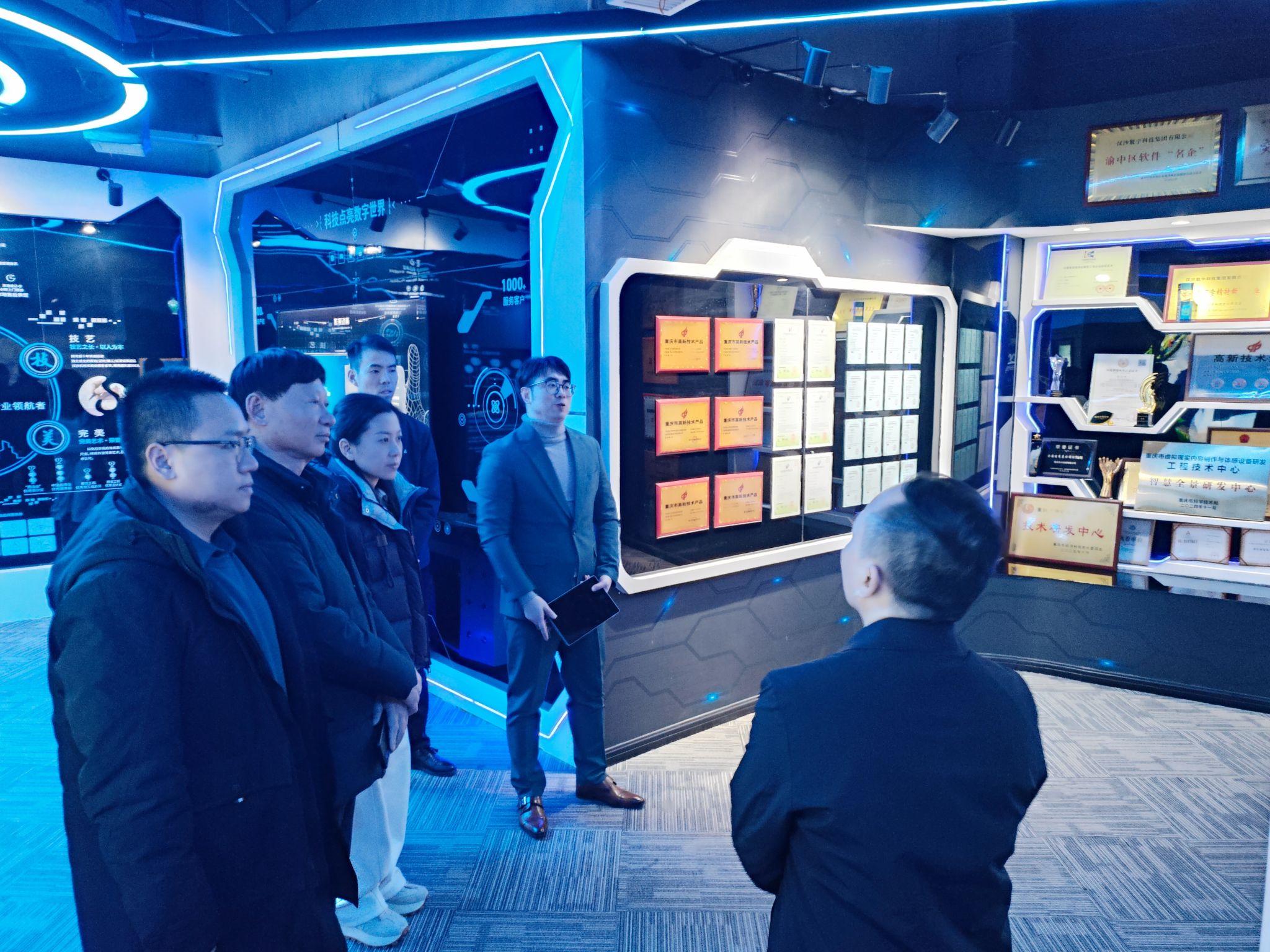2026年2月3日,hg皇冠官网党委书记任倩、党委副书记沈伟正、常务副院长郑瑞丰、副院长(顾问)鲁晓成一行赴汉沙数字科技集团有限公司、华合数智(重庆)科技有限公司等企业进行了学习交流。汉沙数字科技集团有限公司董事长邓辉、人力资源总监龙瑶,华合数智(重庆)科技有限公司运营总监朱莉等企业领导参与考察交流活动。